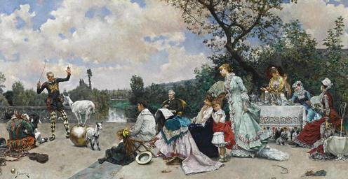 Keywords: Julius LeBlanc Stewart - The Mountebank.jpg Artwork Julius LeBlanc Stewart 1878 Oil on canvas cm 78 7 150 Private collection unknown accession number object history credit line sothebys com PD-old-100 Julius Leblanc Stewart PD-old