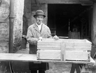 Keywords: william hill williamhill 53 o'connell street, waterford 53oconnellstreetwaterford packing crates man standing working work 1931 1930s thirties older mustache moustache bowler hat crate poole collection poolecollection glass negative glassnegative a.h. poole ahpoole arthur henri poole arthurhenripoole national library of ireland nationallibraryofireland blackandwhite people monochrome black and white This marvellous man is either Mr William Hill of 53 O'Connell Street, Waterford, or was photographed while working at Hill's premises. Date: 3 July 1931 NLI Ref.: P_WP_3840 This marvellous man is either Mr William Hill of 53 O'Connell Street, Waterford, or was photographed while working at Hill's premises. Date: 3 July 1931 NLI Ref.: P_WP_3840