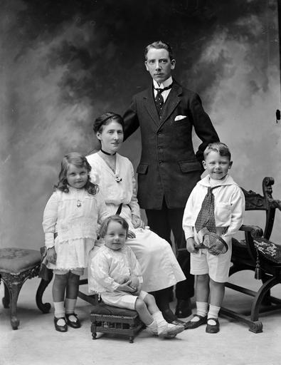 Keywords: t. morrissey tmorrissey morrissey family group portrait children mother father man husband wife son daughter brother sister smile 1918 1910s five poole collection poolecollection glass negative glassnegative a.h. poole ahpoole arthur henri poole arthurhenripoole women john's hill johnshill waterford ireland munster tuesday 9th july 20th century 20thcentury cravat choker racquet broderie anglaise broderieanglaise national library of ireland nationallibraryofireland people groupshot blackandwhite monochrome black and white We think that this is Mr T. Morrissey and his family, from John's Hill in Waterford city. Date: Tuesday, 9 July 1918 NLI Ref.: P_WP_2778 We think that this is Mr T. Morrissey and his family, from John's Hill in Waterford city. Date: Tuesday, 9 July 1918 NLI Ref.: P_WP_2778