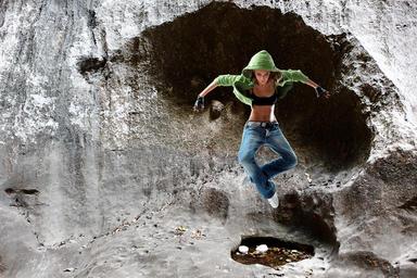 Keywords: jump cave pike jump fun person hop girl hoodie action active puddle jeans sneaker dance