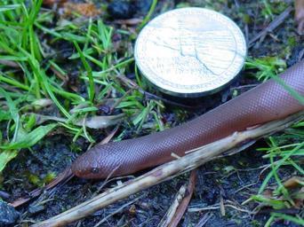 Keywords: Juvenile snake.JPG Rubber Boa near Multnomah Falls Oregon United States Shown with a US nickel for size comparison Own Dar-Ape 2008-05 Charina bottae