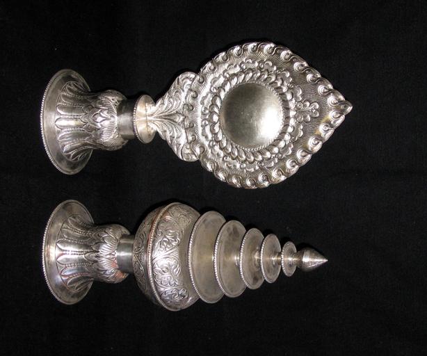 Keywords: Jwala nhaykan.jpg en Ritual objects Jwālā Nhāykan mirror encircled by flames and Sinhamu powder container covered by a five-tiered parasol symbols of prosperity and good fortune in Newar society 2013-11-02 own Uray1130 cc-zero Uploaded with UploadWizard Ritual objects Silverware Mirrors Art of Nepal Metalwork of Nepal Culture of Nepal Black background