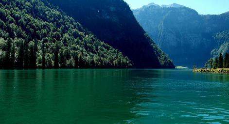 Keywords: königssee bavaria national park berchtesgaden germany turquoise lake mountains view panorama ships
