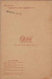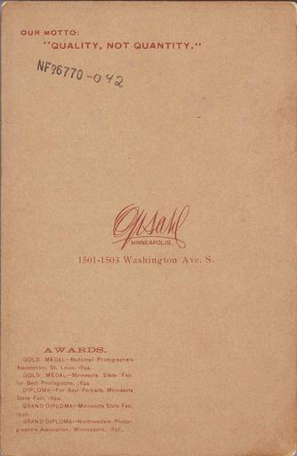 Keywords: Kabinettfotografi, Norskamerikanere, Norsk Folkemuseum NF.06770-042, bilde 2.jpg nb Kabinettfotografi av ukjent mann kortets bakside Norskamerikaner Fotografiet er kommet inn i forbindelse med Jeg fant jeg fant innsamlingen i 1962 Serien er fra norsk-amerikansk miljø Enkelte av fotografene har norskliknende navn en Cabinet card unknown male back of card Norwegian American ~ 1890 NF NF 06770-042 kabinettfotografi-norsk-amerikanere-mann-i Opsahl A U Minnesota Minneapolis USA / Norsk Folkemuseum <gallery> File Kabinettfotografi Norskamerikanere Norsk Folkemuseum NF 06770-042 bilde 1 jpg </gallery> PD-old Cabinet cards Norwegian Americans |