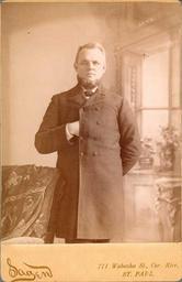 Keywords: Kabinettfotografi, Norskamerikanere, Norsk Folkemuseum NF.06770-031, bilde 1.jpg nb Kabinettfotografi av ukjent mann Norskamerikaner Fotografiet er kommet inn i forbindelse med Jeg fant jeg fant innsamlingen i 1962 Serien er fra norsk-amerikansk miljø Enkelte av fotografene har norskliknende navn en Cabinet card unknown male Norwegian American 1890 NF NF 06770-031 kabinettfotografi-norsk-amerikanere-mann-i Sagen Minnesota St Paul USA / Norsk Folkemuseum <gallery> File Kabinettfotografi Norskamerikanere Norsk Folkemuseum NF 06770-031 bilde 2 jpg </gallery> PD-old Cabinet cards Hand-in-waistcoat in portrait photographs Men wearing neckties Men with beards Black and white photographic portraits of men Black and white portrait photographs of men at three-quarter length Men looking at viewer 1890s portrait photographs Norwegian Americans