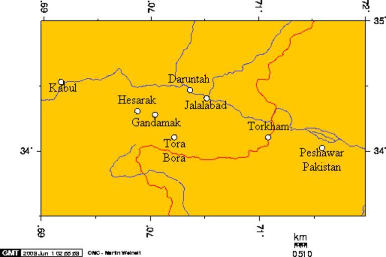 | Keywords: Kabul, Peshawar, and some cities in Nangarhar, Afghanistan 6.png Kabul is the capital of Afghanistan; Jalalabad is the capital of Nangarhar Province and said to be the largest city in Afghanistan; Tora Bora is said to be the location of a cave complex that was Osama bin Laden's last hideout in Afghanistan; Torkham is a city on the Afghan/Pakistan border; Peshawar is a large city in Pakistan on the edge of Pakistan's Tribal Areas Own work by uploader -- using this http //www aquarius geomar de/omc/ online map creation tool Geo Swan 2008-05 cc-by-sa-3 0 GFDL Khyber Pass maps Maps of Nangarhar Province |