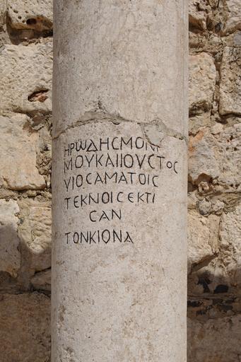 | Keywords: Kafarnaum BW 21.jpg Ἡρῴδης ονίμου καὶ Ἰούστος υἱὸς ἅμα τοῖς τέκνοις ἔκτισαν τὸν κίονα Kafarnaum Synagoge Inschrift an einer Säule Herodes Sohn des Monimos und sein Sohn Justus errichteten gemeinsam mit den Kindern diese Säule Capernaum Synagogue inscription at a column Herod son of Monimos and his son Justus erected this column together with the children own 2010-09-16 Berthold Werner ImageNote 1 435 1128 1128 1006 2023 3034 2 Ἡρῴδης ονίμου καὶ Ἰούστος υἱὸς ἅμα τοῖς τέκνοις ἔκτισαν τὸν κίονα Herodes Sohn des Monimos und sein Sohn Justus errichteten gemeinsam mit den Kindern diese Säule Herod son of Monimos and his son Justus erected this column together with the children ImageNoteEnd 1 QualityImage Photographs by User Berthold Werner/Israel Palestina Taken with Pentax K10D Capernaum byzantine synagogue Quality images by User Berthold Werner Quality images of Israel |