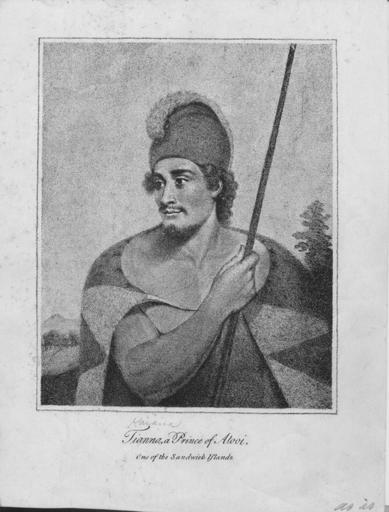 Keywords: Kaiana (PP-96-7-001).jpg en Tianna a Prince of Atooi or Ka'iana lithograph by Spoilum 1787 in John Meares Voyages Made in the Tears 1788 and 1789 http //archives1 dags hawaii gov/gallery2/main php g2_itemId 1939 g2_imageViewsIndex 1 Hawaii State Archvives Call Number PP-96-7-001 credited to London 1790 rpt New York 1967 1787 <gallery>File Tianna a Prince of Atooi lithograph by Spoilum c 1787 jpg</gallery> Kaiana Hawaii in the 1780s Mahiole ʻAhu ʻula PD-old-100 |