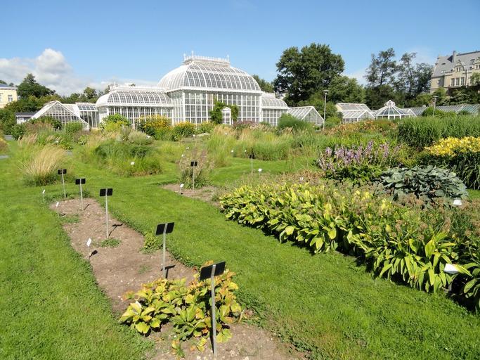 Keywords: kaisaniemi finland botanical garden building sky clouds greenhouse glass plants flowers scenic plots rows field flora nature outside destinations landmark summer spring