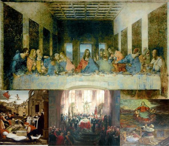 | Keywords: Kaiserin Friedrich aufgebahrt, das Pestwunder von Hohenbaden im Land ihrer Schwägerin Grossherzogin Luise und Anbetung des Heiligen Sebastian gegen die Pest unter Leonardos Abendmahl.JPG de Kaiserin Friedrich aufgebahrt im Jahre 1901 unten Mitte in der von ihr 1898 sanierten Stadtkirche St Johannes in Kronberg - vor allem die Deckengemälde mit den 12 Aposteln liess sie restaurieren Links davon die Anbetung des in Mailand geborenen Heiligen Sebastian als Schutzheiliger gegen die Pest Rechts davon das Fresko aus der Trinkhalle Baden-Baden Schloss Hohenbaden - die Landesfürstin betet um Errettung vor der Pest - im Lande in dem die Schwägerin Kaiserin Friedrichs Grossherzogin war Oberhalb das Letzte Abendmahl von Leonarda da Vinci in Mailand Anmerkung; Kronberg liegt oberhalb von Frankfurt am Main http //commons wikimedia org/wiki/File Leonardo_da_Vinci_ 1452-1519 _-_The_Last_Supper_ 1495-1498 jpg http //www kaiserinfriedrich de/expo20 html http //commons wikimedia org/wiki/File Baden-Baden-Trinkhalle-Fresko13-Schloss_Hohenbaden2-gje JPG http //commons wikimedia org/wiki/File Plaguet03 jpg Ferdinand Bütt Jakob Götzenberger Josse Lieferinxe Leonarda da Vinci 1901 1844 1499 1498 Victoria Princess Royal PD-old |