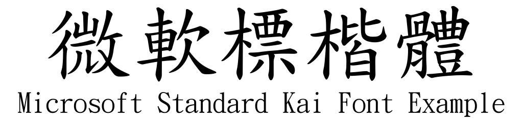 Keywords: KAIU.svg en Microsoft Kaiu Standard Kai-Ti in zh-hant Own Arithmandar Chinese typography Microsoft Windows Vista Microsoft typefaces Typeface name samples CJK typeface samples