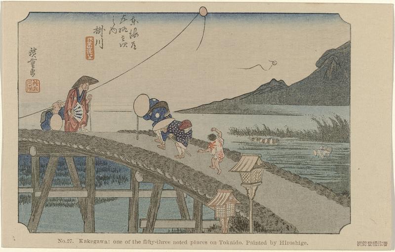 Keywords: Kakegawa-Rijksmuseum RP-P-2010-310-95-27.jpeg accession number RP-P-2010-310-95-27 Utagawa died 1858; Fujisawa Bunjirô Fujisawa BunjirôHiroshige I credit line nl Reizigers lopen over de brug bij de Kake rivier een vlieger wordt van de overkant opgelaten Label Line mentioned on object Hiroshige I Utagawa 1797 - 1858 1906 kleurenhoutsnede; lijnblok in zwart met kleurblokken Collection prenten; Japan collectie kaart Height mm 90 kaart Width mm 141 exhibition history cardboard object history Acquisition 2009-10-13 object type PD-US PD-old Data and photography rights All data and all images made available through the API are either in the public domain or are subject to a CC0 license https //www rijksmuseum nl/en/api/terms-and-conditions-of-use cc-zero place of creation Japan http //www rijksmuseum nl/collectie/RP-P-2010-310-95-27 http //hdl handle net/10934/RM0001 COLLECT 490370 handle Kakegawa Uploaded with GWToolset Rijksmuseum RP-P-2010-310-95-27 http //www rijksmuseum nl/media/assets/RP-P-2010-310-95-27 Images uploaded by Fæ Japanese 20th-century prints in the Rijksmuseum Amsterdam Images from the Rijksmuseum |