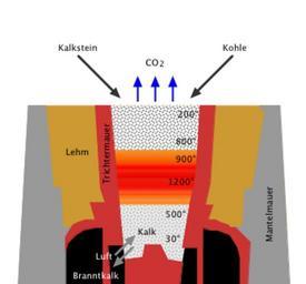 Keywords: Kalktrichterofen.png Schema eines Kalktrichterofens selbst erstellt von pitichinaccio - 1 Dez 2005 2005-12-01 own assumed Pitichinaccio Lime kilns