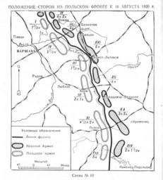 | Keywords: Kamenev map 10.jpg en Polish-Soviet front 16 08 1920 ru Положение сто он на польском ф онте к 16 августа 1920 г С С Каменев Бо ьба с белой Польшей Военный вестник 1922 N12 ст 7-17 Записки о г ажданской войне и военном ст оительстве Воениздат 1963 С С Каменев 1922 PD-old Maps of the Polish-Soviet War |
