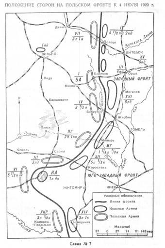 | Keywords: Kamenev map 7.jpg en Polish-Soviet front 4 07 1920 ru Положение сто он на польском ф онте к 4 июля 1920 г С С Каменев Бо ьба с белой Польшей Военный вестник 1922 N12 ст 7-17 Записки о г ажданской войне и военном ст оительстве Воениздат 1963 С С Каменев 1922 PD-old Maps of the Polish-Soviet War |