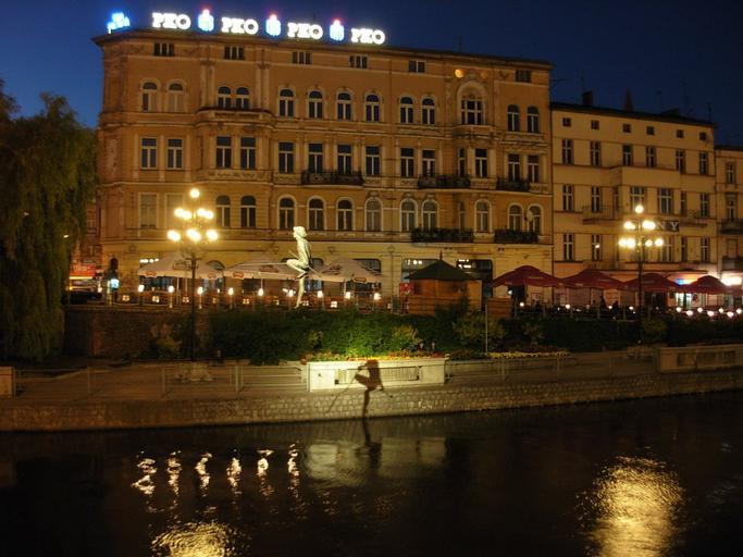 Keywords: Kamienice nad Brdą zmierzch b.jpg pl Kamienica nad Brdą w Bydgoszczy own Pit1233 2007 Bydgoszcz Waterfront at night Przechodzący przez rzekę at night