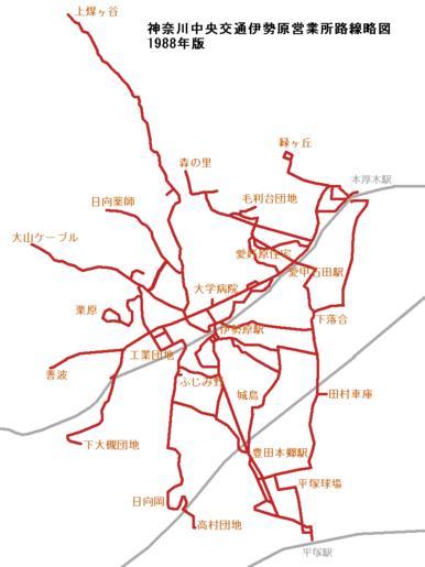 Keywords: Kanachu Isehara 1988.gif ja 神奈 中央交 伊勢原営業 路線略図(1988年) 赤線 バス路線 灰線 鉄道線 Created by Cassiopeia_sweet Cassiopeia_sweet 2008-08-07 Bus maps of Kanagawa Chuo Kotsu