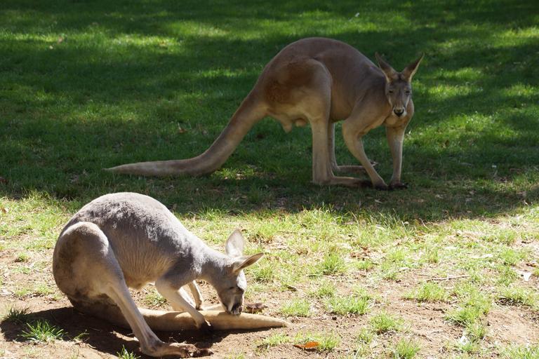Keywords: kangaroos couple pre pasture green grass national park australia macropodidé kangaroo marsupial marsupials animal animals green wild zoo cute curious spring
