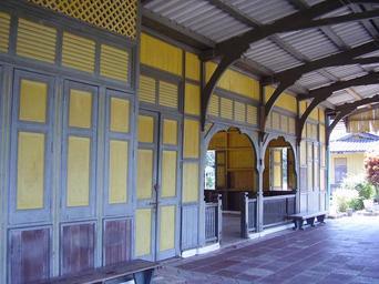 | Keywords: Kantang railway 20061231 PB230157.JPG The Kantang railway station is situated in Amphoe Kantang Trang province south of Thailand Kantang is one of the oldest towns in southern Thailand 2000 years ago it was an important port with the town standing on the mouth of the river Merchants from India and Arabia landed their goods at Kantang port and transported across the peninsula to Surat Thani and Nakhon Si Thammarat to be traded with the silks and treasures from China They did this to avoid having to travel through the Strait of Malacca where there were lots of pirates The station was operated since April 1 1913 It is the end of the rail line of the Southern Andaman route The building is in its original 1900s Sino-Portuguese architecture 7 41084 N 99 51468 E type landmark_region TH Kantang Kantang Station |