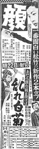 Keywords: Kao+Midare shiragiku 1957.jpg 顔 および まだら頭巾剣を けば 乱れ白菊 1957年1 21日付新聞広告 2014-04-05 23 28 38 http //www geocities jp/konoejsr/p-syotiku-s32/p-madarazukin2 jpg 竹 Custom license marker 2014 04 05 PD-Japan-organization Uploaded with UploadWizard Advertisements in Japan 1957 advertisements Shochiku Gotanda Theatre |