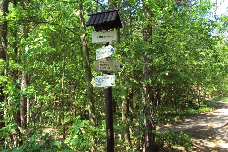 Keywords: Karasy R1.jpg cs Rozcestník Karasy katastr Provodín již mimo obec žlutá s modrou own Zákupák 2011-05-22 50 37 46 255 N 14 34 39 716 E region CZ Provodín Hiking and footpath fingerposts in Česká Lípa District