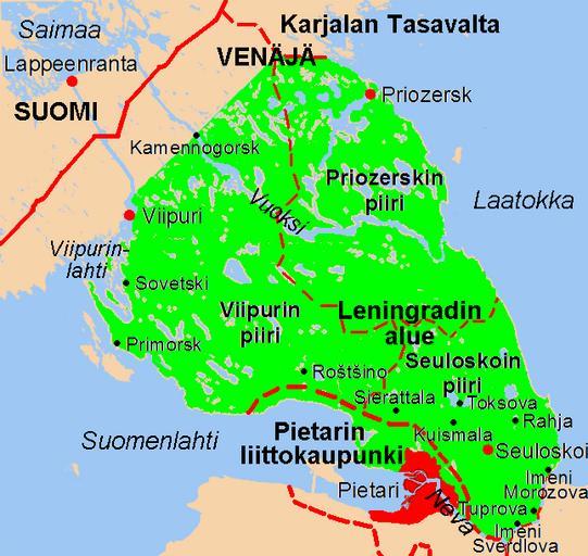 Keywords: Karelian Isthmus in Finnish.png en Finnish map of Karelian Isthmus fi Karjalankannaksen suomenkielinen kartta Own 2008-04-30 KosPek Maps in Finnish Maps of the Karelian Isthmus