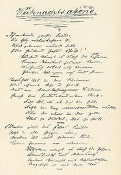 Keywords: Karl May Gedicht Weihnachtsabend p1.jpg Karl Mays Gedicht Weihnachtsabend entstand vermutlich während seiner Haft auf Schloss Osterstein <u>Weihnachtsabend </u> žIch verkünde große Freude <br /> Die Euch widerfahren ist; <br /> Denn geboren wurde heute <br /> Euer Heiland Jesus Christ Jubelnd klingt es durch die Sphären <br /> Sonnen kündens jedem Stern <br /> Weihrauch duftet auf Altären <br /> Glocken klingen nah und fern Tageshell ists in den Räumen <br /> Alles athmet Lust und Glück <br /> Und an buntbehangnen Bäumen <br /> Hängt der freudetrunkne Blick Fast ists als ob sich die helle Nacht in Tag verwandeln will; Nur da oben in der Zelle Ists so dunkel ists so still Unten zieht des Festes Freude <br /> Jetzt in alle Herzen ein; <br /> Droben ist mit seinem Leide <br /> Seinem Grame er allein UDrunten wogt es durch die Gassen Lebensfrisch und lebensroth Droben kämpft mit leichenblassen Angesicht er mit dem Tod <small> Zitternd lehnt er an der Mauer <br /> Von des Fiebers Angst umkrallt <br /> Und es fliegen tiefe Schauer <br /> Durch die zuckende Gestalt Seine bleichen Lippen beben Fieberhaft erglüht das Hirn An den kalten Eisenstäben Kühlt er seine heiße Stirn Betend faltet er die Hände <br /> Hebt das Auge himmelan <br /> žVater gieb ein selig Ende <br /> Daß ich ruhig sterben kann Blicke auf Dein Kind hernieder Das sich sehnt nach Deinem Licht Der Verlorne naht sich wieder Geh mit ihm nicht ins Gericht Da erbraußt im nahen Dome <br /> Feierlich der Orgel Klang <br /> Und im majestätschen Strome <br /> Schwingt sich auf der Chorgesang žHerr nun lässest Du in Frieden Deinen Diener zu Dir schlafen gehn Denn sein Auge hat hienieden Deinen Heiland noch gesehn Und der Priester legt die Hände <br /> Segnend auf des Todten Haupt <br /> žSelig ist wer bis ans Ende <br /> An die ewge Liebe glaubt Selig wer aus Herzensgrunde Nach der Lebensquelle strebt Und noch in der letzten Stunde Seinen Blick zum Himmel hebt Suchtest Du noch im Verscheiden <br /> Droben den Versöhnungsstern <br /> Wird er Dich zur Wahrheit leiten <br /> Und zur Herrlichkeit des Herrn Darum gilt auch Dir die Freude <br /> Die uns widerfahren ist; <br /> Denn geboren wurde heute <br /> Auch Dein Heiland Jesus Christ </small> http //karl-may-wiki de/index php/Weihnachtsabend_ 28Gedicht 29 between 1865 1868 Creator Karl May PD-old-100 <gallery> Karl May Gedicht Weihnachtsabend p1 jpg Part 1 Karl May Gedicht Weihnachtsabend p2 jpg Part 2 Karl May Gedicht Weihnachtsabend p3 jpg Part 3 </gallery> Manuscripts by Karl May Poems by Karl May |