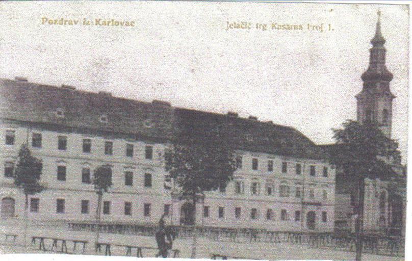 Keywords: Karlovac Kaserne Jelacic-Platz.jpg historische Aufnahme von 1900 der habsburger Kadettenschule am Ban Jelacic Platz in Karlovac mit serbisch-orthodoxer Nikolas Kirche Heute leergeräumt im sanierungsbedürftigen Zustand Stadtrat berät seit langen über neuen Verwendungszweck einschließlich Bau einer Tiefgarage unter dem Platz Source Author 1900 PD-old Karlovac Cc-zero |