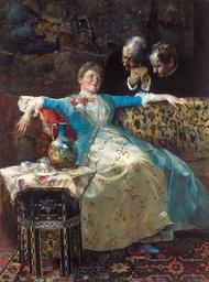 Keywords: Karlovszky Wooers 1880s.jpg Artwork Creator Bertalan Karlovszky s 1880 Oil on canvas Size cm 80 106 Private collection object history exhibition history credit line bottom right Karlovszky Paris accession number http //www viragjuditgaleria hu/ Virág Judit Galéria http //viragjuditgaleria hu/en/item/3448/ Info http //viragjuditgaleria hu/pics/paintings/karlovszky_bertalan-udvarlok_1880_as_evek-19_161 jpg Pic PD-old-70 Paintings by Bertalan Karlovszky