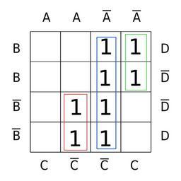 Keywords: Karnaugh map KV 4mal4 Gruppe01c.svg Karnaugh_map with 6 variables Own 2007-10 RosarioVanTulpe 4x4 Karnaugh maps