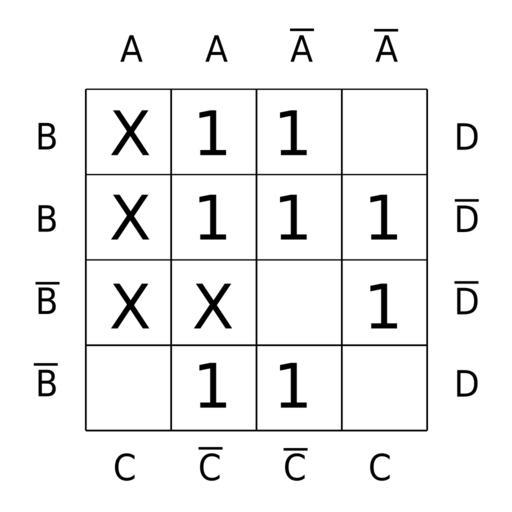Keywords: Karnaugh map KV 4mal4 Gruppe01m.svg Karnaugh_map with 6 variables Own 2007-10 RosarioVanTulpe 4x4 Karnaugh maps