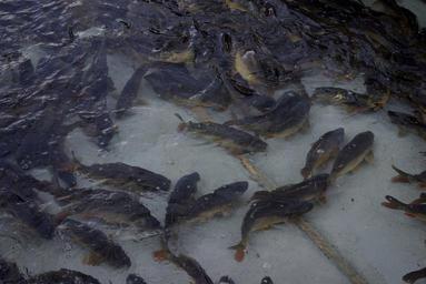 Keywords: Karpfen (Cyprinus carpio) 001.JPG Karpfen Cyprinus carpio im Becken einer Fischhandlung in Erlangen-Eltersdorf own Janericloebe 2009-09 Cyprinus carpio