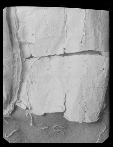 | Keywords: Kasack av scharlakansrött kläde som tillhört Karl X Gustav (1622-1660) - Livrustkammaren - 62509.tif LSH artwork sv I 1671 års inv upptas tre plagg kasack tröja och byxor Kasacken och byxorna är sydda av scharlakansrött kläde Tröjan av silverbrokad Kasacken är liksom nr 3407 skuren i ett helt bakstycke som sneddats ut åt sidorna och rundats nertill och mitt bak klippts upp så att ett 34 cm långt sprund erhållits De 2 framstyckena är raka framtill och har likaledes sneddats ut i sidorna De är 94 5 cm långa från axelsömmens högsta punkt Sidosömmarna är hopsydda Framstyckena har inga ökningar sånär som på synnerligen minimala triangulära kilar längst ut i sidorna nedtill Bakstyckethar ca 40 cm från nederkanten i sidsömmarna en triangulär kil 7 cm hög på båda sidorna Kasacken är lik den föregående fast den gjorts mindre vid även vad beträffar ärmarna som dock avviker genom sin helt öppna slits Ärmarna består av 2 större stycken De är längs hela framsidan öppna ända från axeln utefter kanten har små remsor skarvats på det övre stycket Klädet 23x20 tr/cm2 har en vådbredd av minst 95 eller 135 5 cm beroende av på vilken led av tyget bakstycket är skuret Styckena har sytts ihop så att de långa sömmarna i sidorna kastats samman med rosafärgat 2-trådigt högertvinnat silke 3 á 4 stygn/cm från avigan De små skarvarna har man tydligen bemödat sig om att göra eleganta och så osynliga som möjligt Ytterkanterna är ej infållade utan endast klippta och man har sytt fast fodret med tråckelstygn sedan dess ytterkanter vikts in Kring halslinningen är en liten slå av dubbelvikt kläde som på utsidan är 1 cm hög Fodret utgörs av cinnoiberröd nu starkt blekt moiré Vådbredden är 104 cm utan stad 64x37 tr/cm2 Stad 0 9 cm 10 vita 10 röda 15 gröna 1 röd tråd tuskaft Då icke heller fodret har någon skarv i ryggstycket så när som på hörnskarvarna i sidorna har man här utnyttjat tygets stora bredd Mitt i ryggen syns vecket från tygets moirébehandling vattring Kasacken är nu berövad all sin garnering Blott rester av trådar och stygn samt rader av hål antyda att plagget varit garnerat med knappar och spetsar Man omnämner i 1675 års Klädkammarräkning att silverspetsar sprättats bort för att begagnas i samband med Karl XI s kröning Sålunda har höger framstycke 2 5 cm från kanten små hål efter 37 knappar och ärmarnas öppna bakstycken visar att 31 knappar här suttit på samma 2 5 cm avstånd från kanten Likaledes har sprundet bak på högra skörtet hål efter 15 knappar Inga knappar har sytts genom fodret Plagget har ej varit mellanfodrat men papper ligger ännu kvar runt de flesta sömmar för att ge styrsel vid spetsarnas fastsättande Kasacken är malskadad Man kan på dylika ställen med relativ lätthet räkna trådarna/cm2 och konstatera att klädet vävts av ofärgat ullgarn som sedan ryggats och färgats ty de malätna partierna är ljusa I halsen är kaplitzen d v s bandet delvis bevarat Det består av ett dubbelvikt 1 7 cm brett rosafärgat ripsband 22 inlsagstr/cm original caption 1647 silk Färg cinnoiberröd d2 - dräkt - foder material siden - broadcloth Färg scharlakansröd d1 - dräkt - yttermaterial material kläde LRK Karl X Gustav av Sverige Modelejon 2002 place of origin original filename LN_E04613 68489 inventory number LRK 31928 62509 CC0 Kasack av scharlakansrött kläde som tillhört Karl X Gustav 1622-1660 - Livrustkammaren - 62509-negative tif <gallery caption Different images of same object > File Kasack av scharlakansrött kläde som tillhört Karl X Gustav 1622-1660 - Livrustkammaren - 45387 tif File Kasack av scharlakansrött kläde som tillhört Karl X Gustav 1622-1660 - Livrustkammaren - 28268 tif File Kasack av scharlakansrött kläde som tillhört Karl X Gustav 1622-1660 - Livrustkammaren - 19706 tif File Kasack av scharlakansrött kläde som tillhört Karl X Gustav 1622-1660 - Livrustkammaren - 53948 tif File Kasack av scharlakansrött kläde som tillhört Karl X Gustav 1622-1660 - Livrustkammaren - 1609 tif File Röd dräkt som tillhört Karl X Gustav från 1647 - Livrustkammaren - 48035 tif File Kasack av scharlakansrött kläde som tillhört Karl X Gustav 1622-1660 - Livrustkammaren - 45345 tif File Kasack av scharlakansrött kläde som tillhört Karl X Gustav 1622-1660 - Livrustkammaren - 53906 tif </gallery> Tops clothing Media contributed by LSH 2016-12 |