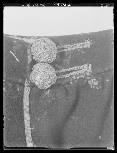 | Keywords: Kasack av scharlakansrött kläde som tillhört Karl X Gustav (1622-1660) - Livrustkammaren - 45345.tif LSH artwork sv I 1671 års inv upptas tre plagg kasack tröja och byxor Kasacken och byxorna är sydda av scharlakansrött kläde Tröjan av silverbrokad Kasacken är liksom nr 3407 skuren i ett helt bakstycke som sneddats ut åt sidorna och rundats nertill och mitt bak klippts upp så att ett 34 cm långt sprund erhållits De 2 framstyckena är raka framtill och har likaledes sneddats ut i sidorna De är 94 5 cm långa från axelsömmens högsta punkt Sidosömmarna är hopsydda Framstyckena har inga ökningar sånär som på synnerligen minimala triangulära kilar längst ut i sidorna nedtill Bakstyckethar ca 40 cm från nederkanten i sidsömmarna en triangulär kil 7 cm hög på båda sidorna Kasacken är lik den föregående fast den gjorts mindre vid även vad beträffar ärmarna som dock avviker genom sin helt öppna slits Ärmarna består av 2 större stycken De är längs hela framsidan öppna ända från axeln utefter kanten har små remsor skarvats på det övre stycket Klädet 23x20 tr/cm2 har en vådbredd av minst 95 eller 135 5 cm beroende av på vilken led av tyget bakstycket är skuret Styckena har sytts ihop så att de långa sömmarna i sidorna kastats samman med rosafärgat 2-trådigt högertvinnat silke 3 á 4 stygn/cm från avigan De små skarvarna har man tydligen bemödat sig om att göra eleganta och så osynliga som möjligt Ytterkanterna är ej infållade utan endast klippta och man har sytt fast fodret med tråckelstygn sedan dess ytterkanter vikts in Kring halslinningen är en liten slå av dubbelvikt kläde som på utsidan är 1 cm hög Fodret utgörs av cinnoiberröd nu starkt blekt moiré Vådbredden är 104 cm utan stad 64x37 tr/cm2 Stad 0 9 cm 10 vita 10 röda 15 gröna 1 röd tråd tuskaft Då icke heller fodret har någon skarv i ryggstycket så när som på hörnskarvarna i sidorna har man här utnyttjat tygets stora bredd Mitt i ryggen syns vecket från tygets moirébehandling vattring Kasacken är nu berövad all sin garnering Blott rester av trådar och stygn samt rader av hål antyda att plagget varit garnerat med knappar och spetsar Man omnämner i 1675 års Klädkammarräkning att silverspetsar sprättats bort för att begagnas i samband med Karl XI s kröning Sålunda har höger framstycke 2 5 cm från kanten små hål efter 37 knappar och ärmarnas öppna bakstycken visar att 31 knappar här suttit på samma 2 5 cm avstånd från kanten Likaledes har sprundet bak på högra skörtet hål efter 15 knappar Inga knappar har sytts genom fodret Plagget har ej varit mellanfodrat men papper ligger ännu kvar runt de flesta sömmar för att ge styrsel vid spetsarnas fastsättande Kasacken är malskadad Man kan på dylika ställen med relativ lätthet räkna trådarna/cm2 och konstatera att klädet vävts av ofärgat ullgarn som sedan ryggats och färgats ty de malätna partierna är ljusa I halsen är kaplitzen d v s bandet delvis bevarat Det består av ett dubbelvikt 1 7 cm brett rosafärgat ripsband 22 inlsagstr/cm original caption 1647 silk Färg cinnoiberröd d2 - dräkt - foder material siden - broadcloth Färg scharlakansröd d1 - dräkt - yttermaterial material kläde LRK Karl X Gustav av Sverige Modelejon 2002 place of origin original filename LN_E04191 68489 inventory number LRK 31928 45345 CC0 Kasack av scharlakansrött kläde som tillhört Karl X Gustav 1622-1660 - Livrustkammaren - 45345-negative tif <gallery caption Different images of same object > File Kasack av scharlakansrött kläde som tillhört Karl X Gustav 1622-1660 - Livrustkammaren - 45387 tif File Kasack av scharlakansrött kläde som tillhört Karl X Gustav 1622-1660 - Livrustkammaren - 62509 tif File Kasack av scharlakansrött kläde som tillhört Karl X Gustav 1622-1660 - Livrustkammaren - 28268 tif File Kasack av scharlakansrött kläde som tillhört Karl X Gustav 1622-1660 - Livrustkammaren - 19706 tif File Kasack av scharlakansrött kläde som tillhört Karl X Gustav 1622-1660 - Livrustkammaren - 53948 tif File Kasack av scharlakansrött kläde som tillhört Karl X Gustav 1622-1660 - Livrustkammaren - 1609 tif File Röd dräkt som tillhört Karl X Gustav från 1647 - Livrustkammaren - 48035 tif File Kasack av scharlakansrött kläde som tillhört Karl X Gustav 1622-1660 - Livrustkammaren - 53906 tif </gallery> Tops clothing Media contributed by LSH 2016-12 |