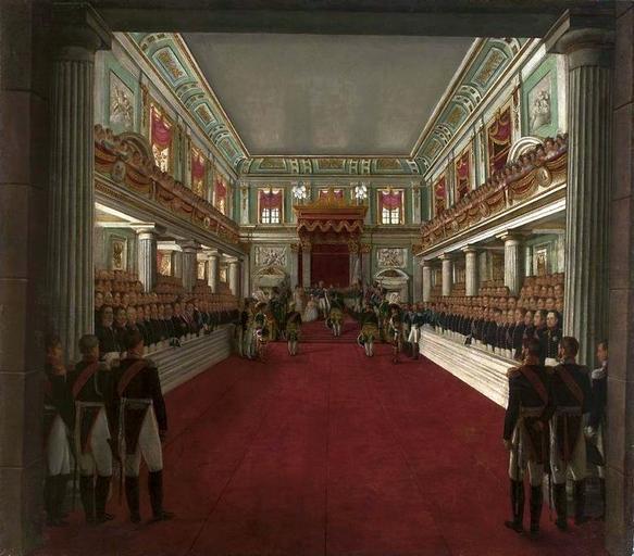 Keywords: Kasprzycki Coronation of Alexandra Feodorovna.jpg Artwork Creator Antoni Brodowski 1829 oil canvas cm 161 193 Institution National Museum Warsaw Not on view accession number 32711 object history ProvenanceEvent deposit National Museum in Warsaw Temler Ludwik credit line Coronation ceremony in the New Senate Chamber at the Royal Castle in Warsaw On May 24th 1829 the Tsar Nicholas I of Russia crowned himself and his wife as King and Queen of Poland http //cyfrowe mnw art pl/dmuseion/docmetadata id 15924 cyfrowe mnw art pl See below <gallery>Coronation of Alexandra Feodorovna by Nicolas I of Russia in the Castle of Warsaw in 1829 PNG</gallery> PD-old-100 DEFAULTSORT 1829; Coronation of Alexandra Feodorovna Paintings by Antoni Brodowski in the National Museum in Warsaw Alexandra Feodorovna Charlotte of Prussia Coronations in Poland Royal Castle Warsaw in the 19th century Senate Chamber Royal Castle Warsaw Nicholas I of Russia in documentary paintings Coronations in Russia |