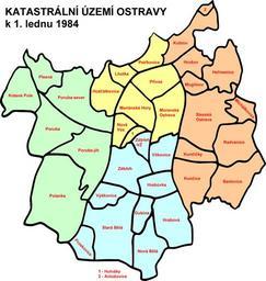 | Keywords: Katastrální území Ostravy 1984.png Katastrální území Ostravy k 1 lednu 1984 vlastní dílo založené na Ostravském sborníku 13 2007-05-05 Lukáš Mižoch ;Barevná legenda <span style background-color ffff99; >Ostrava 1</span> <span style background-color ffcc99; >Ostrava 2</span> <span style background-color ccffff; >Ostrava 3</span> <span style background-color ccffcc; >Ostrava 4</span> Municipal parts of Ostrava Maps of Ostrava | ||||