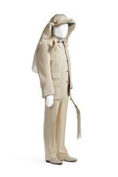 | Keywords: Kavajkostym bestående av kavaj, väst och byxor. Tillhört Walther von Hallwyl - Hallwylska museet - 89103.tif KOSTYM kavaj- <br/><br/>Bestående av kavaj väst och byxor <br/><br/>Av vit cheviot samt med gulvita benknappar Hand- och maskinsydda <br/><br/>Kavaj Enradig livskuren med fyra knappar samt nedviken krage och korta slag i det vänstra ett knapphål; framstyckenas hörn rundade Ryggen med sid- och axelsömmar Knapparna runda fyrhåliga med plan framsida och stavformig kant Foder av smalrandigt vitt siden alpacka på högra framstycket en bröstficka; ärmfoder av smalrandigt crèmegult halvsiden <br/><br/>Mått Ärmhålsdjup 23 cm ; längd hel 76 cm ; ryggbredd halv 19 cm ; ärmlängd 80 cm ; bröstvidd fram 44 cm ; bröstvidd hel 106 cm ; livvidd 98 cm <br/><br/>Väst Enradig med sex knappar som de mindre i kavajen korta vinkelskurna slag samt två svagt snedskurna sidofickor samt på vänstra framstycket dessutom en dylik bröstficka alla med rak kantslå Ryggstycke av vit ylleklot ett stycke från nedre kanten två spänntampar med spänne av svartlackerad mässing och med två taggar tornar Nedtill i mitten ett sprund Fodret i rygg- och framstycken av blommig vit bomullssatin <br/><br/>Mått Schalöppning 31 cm Hel västlängd 70 cm <br/><br/>Byxor Upptill på vardera framstycket en snedskuren tvärficka Midjeband med hake och hyska knapp och knapphål samt sex hängselknappar Gylfen med fyra små knappar ock knapphål Midjebandet fodrat med rött skinn saffian bak- och gylffoder av vitt bomullstyg Fickor av vitt bomullstyg Knapphålen handsydda med vitt grovt silke eller vit bomullstråd <br/><br/>Mått Yttersöm längd 106 cm ; innersöm längd 82 cm ; livvidd 82 cm ; stussvidd 108 cm ; lårvidd 66 cm ; knävidd 48 cm ; vidd nedtill 46 cm <br/><br/>Förfärdigade efter beställning av Walther von Hallwyl i Oktober 1900 hos skrädderifirman Fr Kaedings Efterträdare Zittorin Lundvik hovleverantörer <br/><br/>Begagnad av Walther von Hallwyl under hans resa genom Egypten och Sudan tillsammans med sin maka dotter och svärson samt fröken Ida Uhse den 5 November 1900 till 29 Mars 1901 original caption Kavajkostym bestående av kavaj väst och byxor Tillhört Walther von Hallwyl Foto till boken Ett sekel av dräkt och mode ur de Hallwylska samlingarna <br/> Nyckelord Kavajer Cheviot Walther von Hallwyl Zittorin Lundvik Resedräkter Resa Föremålsbild Skor Ett sekel av dräkt och mode ur de Hallwylska samlingarna HWY Walther von Hallwyl place of origin Stockholm SE original filename hm_dig3307 8246 inventory number HWY XXI I A 03 89103 CC-BY-SA Jens Mohr <gallery caption Different images of same object > File Gentlemannen - om män och mode - Hallwylska museet - 85871 tif File Gentlemannen - om män och mode - Hallwylska museet - 85872 tif File Gentlemannen - om män och mode - Hallwylska museet - 85873 tif File Detalj av kostym Foto till boken Ett sekel av dräkt och mode ur de Hallwylska samlingarna - Hallwylska museet - 89347 tif File Kostym detalj Foto till boken Ett sekel av dräkt och mode ur de Hallwylska samlingarna - Hallwylska museet - 89386 tif </gallery> Jens Mohr Walther von Hallwyl Footwear Clothing on white background Clothing in the Hallwyl museum Male clothing Trousers Media contributed by LSH unmatched objKeyword Media contributed by LSH unmatched creator Media contributed by LSH unmatched keyword Media contributed by LSH 2013-10 |