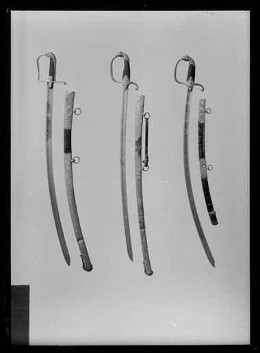 | Keywords: Kavalleriofficerssabel, Sverige 1810-1818 med fäste av s.k - Livrustkammaren - 60749.tif LSH artwork sv Fäste av förgylld reliefornerad mässing kappa framtill i form av ett<br/>lejonhuvud med manen inramad av en slät list och baktill övergående i en<br/>nedåtböjd hylsa utgörande kavelns överdel denna ornerad med stiliserade<br/>blad på baksidans förlängda nederdelen stjärnliknande rosett Handbygel<br/>i sin helhet bågformig överdelen intappad i lejongapet mellandelen på<br/>båda sidor med en ranka av klockformiga blad på mitten avbruten av en<br/>långsträckt rosett Bakre parerstång nedåtböjd ornerad med enkla snedställda<br/>blad och avslutad med en liten rund rosettornerad skiva Styrskenor stora <br/>formade som romber med insvängda sidor och tvärt avskurna hörn samt ornerade med en bröstbild av Minerva i profil åt vänster <br/>Kavel av ebenholts med mjukt rektangulärt tvärsnitt ut-och insidan med tätt inskuret rombiskt rutmönster <br/>Klinga böjd eneggad och med plan rygg spetspartiet med ryggsidan konkavt<br/>insvängd mot eggsidan Ut-och insidan med bred hålkäl nående fram till<br/>ett avstånd av ca 125mm från spetsen På starka delens båda sidor etsad<br/>och förgylld ornering Nedtill ett rektangulärt fält inramat av förgylld<br/>bård härovanför liten trofégrupp med oval sköld vari otydligt tre kronor <br/>längst upp ett trekronorsvapen i oval sköld omgivet av lagerkrans Mellan<br/>trofégruppen och den ovala trekronorsskölden på utsidan under kunglig krona<br/>monogram av dubbelt C omslutande ordningssiffran XIII Karl X1II under<br/>monogrammet ett svärd korsat med ett ankare på insidan under svensk hertig-krona ett monogram av CJ kronprins Karl Johan under monogrammet två korsade svärd original caption - 1810 1818 ebony b6 - blankvapen - kavel och kavelklädsel material ebenholts - steel b2 - blankvapen - klinga material stål - brass b1 - blankvapen - fäste material mässing g 660 size mm 954 size mm 817 klinga size mm 138 size mm 26 klinga LRK place of origin original filename LN_B05377_008257 47539 inventory number LRK 10974 60749 CC0 Kavalleriofficerssabel Sverige 1810-1818 med fäste av s k - Livrustkammaren - 60749-negative tif Sabre images from Livrustkammaren Media contributed by LSH dim-with multiple size templates Media contributed by LSH 2015-11 |