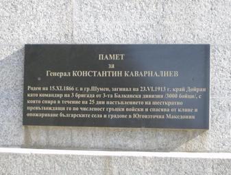 Keywords: Kavarnaliev 2.jpg en Kavarnaliev monnument Shumen bg Възпоменателна плоча за Ð“ÐµÐ½ÐµÑ Ð°Ð» ÐšÐ°Ð²Ð°Ñ Ð½Ð°Ð»Ð¸ÐµÐ² own Izvora Cc-zero Monuments and memorials in Shumen Plaques in Bulgaria Konstantin Kavarnaliev