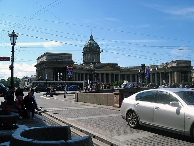 Keywords: kazan mother of god cathedral street traffic sky blue peter russia