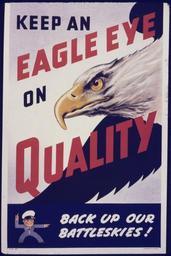 Keywords: Keep an eagle eye on quality. Back up our battleskies^ - NARA - 535058.tif Scope and content General notes 535058 Local identifier 179-WP-1207 Office for Emergency Management War Production Board 01/1942 - 11/03/1945 Still Picture Records Section Special Media Archives Services Division NWCS-S National Archives at College Park 8601 Adelphi Road College Park MD 20740-6001 other date circa 1942 1943 Record group Record Group 179 Records of the War Production Board 1918 - 1947 Record group ARC 508 War Production Board compiled 1942 - 1943 Series ARC 533858 File unit File unit ARC Variant control numbers NAIL Control Number NWDNS-179-WP-1207 yes Other versions <gallery> File Keep_an_eagle_eye_on_quality _Back_up_our_battleskies _-_NARA_-_535058 tif tif File Keep_an_eagle_eye_on_quality _Back_up_our_battleskies _-_NARA_-_535058 jpg jpg </gallery> NARA-cooperation PD-USGov World War II posters from the United States NARA TIF images with categorized JPGs |