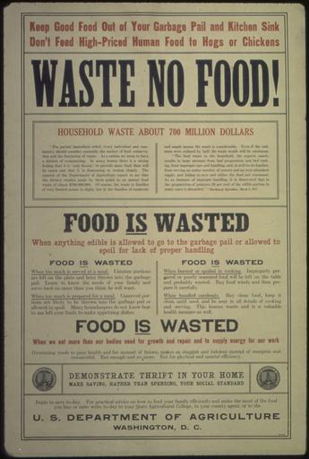 Keywords: "Keep good food out of your garbage pail and kitchen sink. Don't feed high- priced human food to hogs or children.... - NARA - 512694.jpg Scope and content General notes 512694 Local identifier 4-P-256 U S Food Administration Educational Division Advertising Section 01/15/1918 - 01/1919 Still Picture Records Section Special Media Archives Services Division NWCS-S National Archives at College Park 8601 Adelphi Road College Park MD 20740-6001 other date circa 1917 1919 Record group Record Group 4 Records of the U S Food Administration 1917 - 1920 Record group ARC 333 World War I Posters compiled 1917 - 1919 Series ARC 512439 File unit File unit ARC Variant control numbers NAIL Control Number NWDNS-4-P-256 Other versions <gallery> File Keep_good_food_out_of_your_garbage_pail_and_kitchen_sink _Don't_feed_high-_priced_human_food_to_hogs_or_children _-_NARA_-_512694 tif tif File Keep_good_food_out_of_your_garbage_pail_and_kitchen_sink _Don't_feed_high-_priced_human_food_to_hogs_or_children _-_NARA_-_512694 jpg jpg </gallery> NARA-cooperation PD-USGov United States Department of Agriculture USFA WWI food waste avoidance campaign |