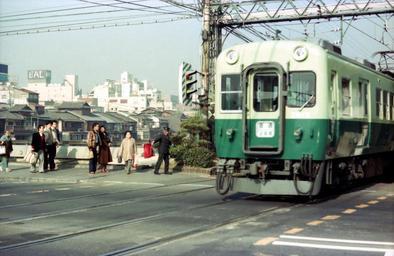 Keywords: Keihan RW 4jyou RC.jpg ja 京阪 四 交差点(踏切)S56頃 owne photo h-tori S56 ライセンス放棄 Level crossings in Japan Gion-shijo Station History of Kyoto