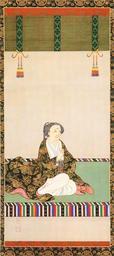Keywords: Keishōin.jpg 桂昌院像 Portrait of Keishōin 不明 Unknown ~ 1804 Colors on silk 絹 色 95 8 x 44 7 cm each Hase-dera Temple 長谷寺 Nara Japan The Japanese book Exhibition of the Treasures and Papers of the Tokugawa Shogunal Household PD-art Paintings of women of Japan People of Edo period Hasedera_ Sakurai |
