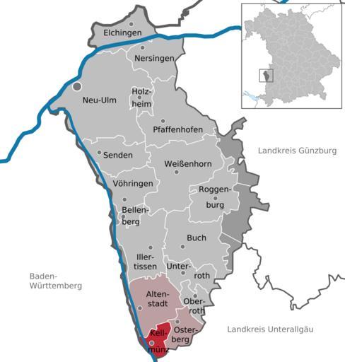 | Keywords: Kellmünz an der Iller in NU.svg DeLocMaps Kellmünz Kellmünz an der Iller Landkreis Neu-Ulm District of Neu-Ulm Neu-Ulm district L'arrondissement de Neu-Ulm Arrondissement de Neu-Ulm Bayern Bavière Bavaria Adobe Illustrator <br/> own based on <br/> File Municipalities_in_Bavaria svg by TUBS<br/> Bavaria_AM svg by TUBS 2010-05-31 Hagar66 based on work of TUBS Hagar66/licensesection Attribution TUBS/Credits Locator maps of municipalities in Landkreis Neu-Ulm Kellmünz an der Iller | ||||