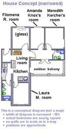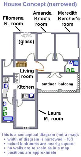 Keywords: Kercher Knox house Perugia Italy.gif Concept diagram of the Kercher/Knox house in Perugia Italy during November 2007 It was the scene of the Murder of Meredith Kercher The diagram is a rough drawing of the upstairs flat or apartment about 16 narrower than the actual house and is not a map and has no legend/ruler as in a scaled map It is merely a rough concept of the area as indicated in numerous photos of the house Origin Per en WP OI an original image is not original research unless it advances some novel viewpoint References There are some floor-plan maps which support the layout of the concept diagram but with window placement wall dimensions and furniture positions more accurate See http //friendsofamanda org/miscellaneous/fingerprint_map_small jpg FOA-fing-map Own 2010-02-05 User Wikid77 architecture Floor plans of Italy Crime scenes Murder of Meredith Kercher