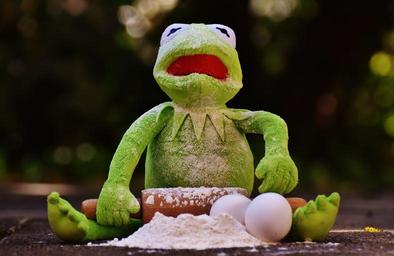 Keywords: kermit bake rolling pin egg flour ingredients prepare preparation roll out frog funny cute