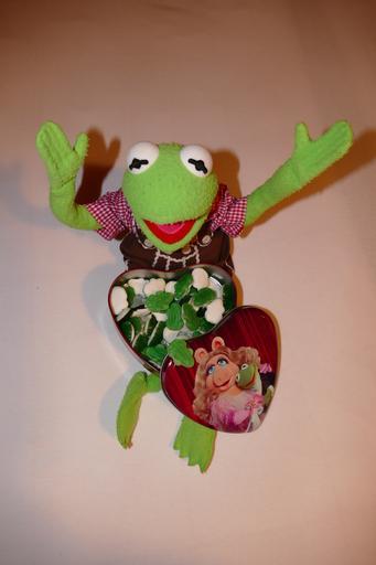 Keywords: kermit frog look forward gummibärchen rubber frogs box heart heart shaped miss piggy friends green doll