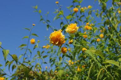| Keywords: Kerria japonica.  CC0 waiver: To the extent possible under law, I waive all copyright and related or neighboring rights to this work. Kerria japonica.  CC0 waiver: To the extent possible under law, I waive all copyright and related or neighboring rights to this work.  Kerria japonica at Hulda Klager Lilac Gardens.jpg  en Flowers stems and leaves of Kerria japonica in bloom with yellow flowers at Hulda Klager Lilac Gardens Own Dcoetzee 45 53 48 756 N 122 45 13 71 W alt 8_source exif_heading cc-zero Hulda Klager Lilac Gardens Kerria japonica cultivars Yellow flowers on blue background  Kerria japonica. CC0 waiver: To the extent possible under law, I waive all copyright and related or neighboring rights to this work. |
