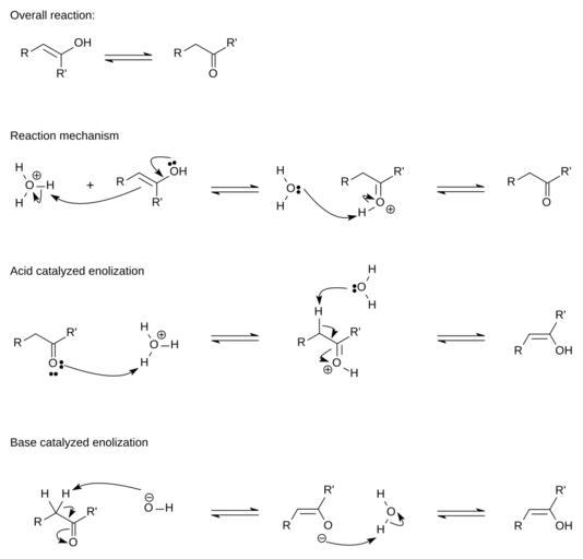 Keywords: Keto-enol.svg en Mechanism of keto-enol tautomerization own ZanderZ 2009-01-24 Image Keto-enol gif Keto-enol tautomerism Reaction mechanisms